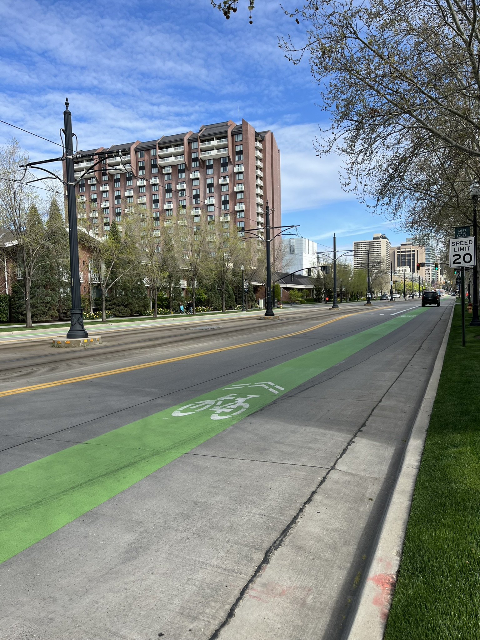 Example of bike lane in SLC, I think it could benefit with extra barriers