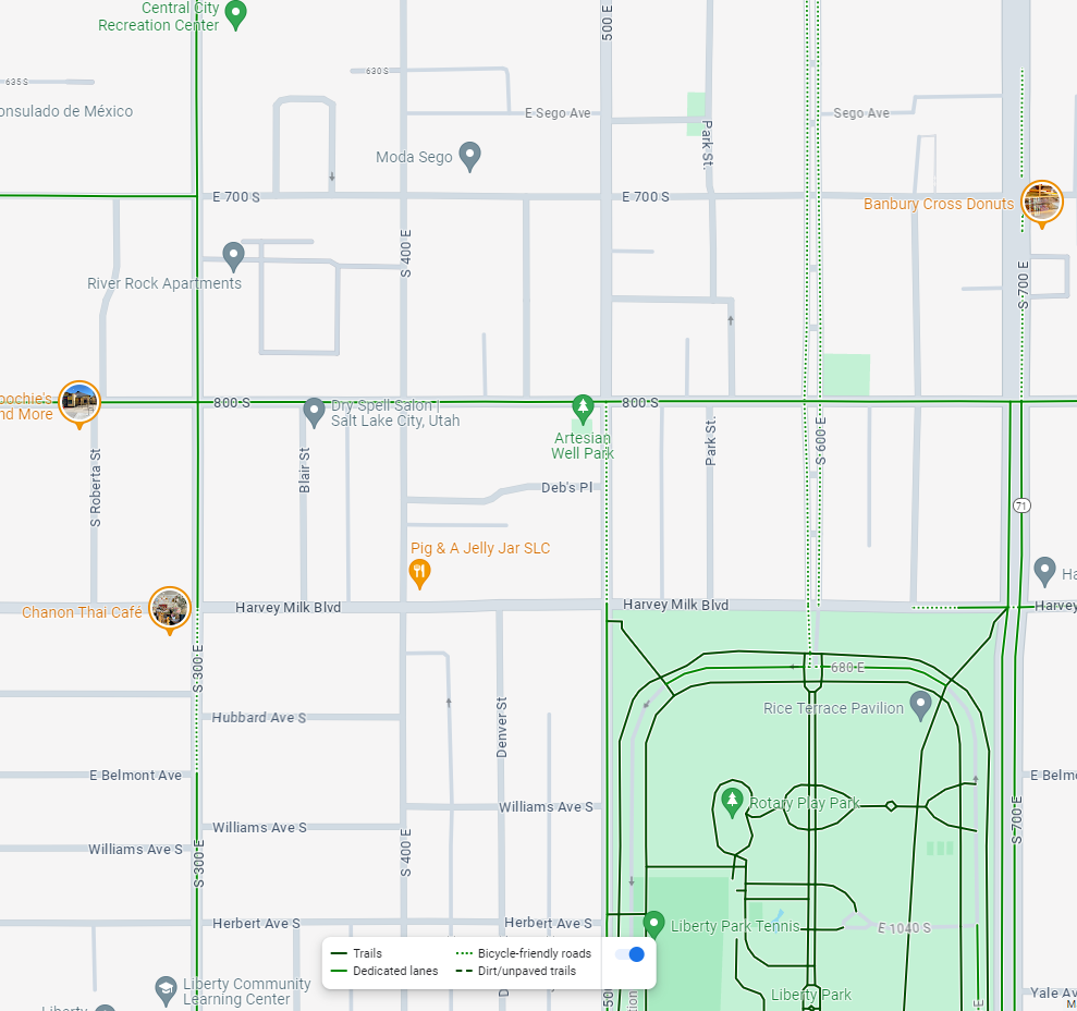 While traveling without a car can be a hindrance, it also opens up opportunities of exploring the public transportation a place has to offer. I was happy to find SLC’s public transportation affordable and easy to use. SLC has a light rail train system that runs through the city, primarily servicing University of Utah students and the main downtown. The train system is not very extensive, but has a fare-free zone in the downtown, and makes getting to/from the airport just a 15-20 minute ride (about the same as an Uber, but at a fraction of the cost). The trains were clean, and seemed to be running within 5 or so minutes of the scheduled time. As a side note, it seems like the “Transit” app is more reliable than Google maps for time estimation for public transportation here (and for RTD in Colorado). In addition to the train system, the city has a network of community “B-cycles” which include both electric and non-electric options. Finally, the city is teeming with electric scooters. These are more expensive, clocking in at around 3 times the cost of a community bike. A phrase I’d really like to introduce for when a bunch of Lime scooters are bunched together on a curb is “a squeeze of Limes” 🍋.