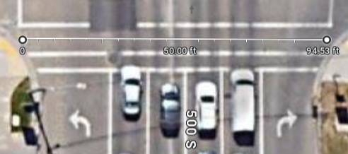 I was curious about the sidewalk length, so here are some additional measurements taken from Google Maps.